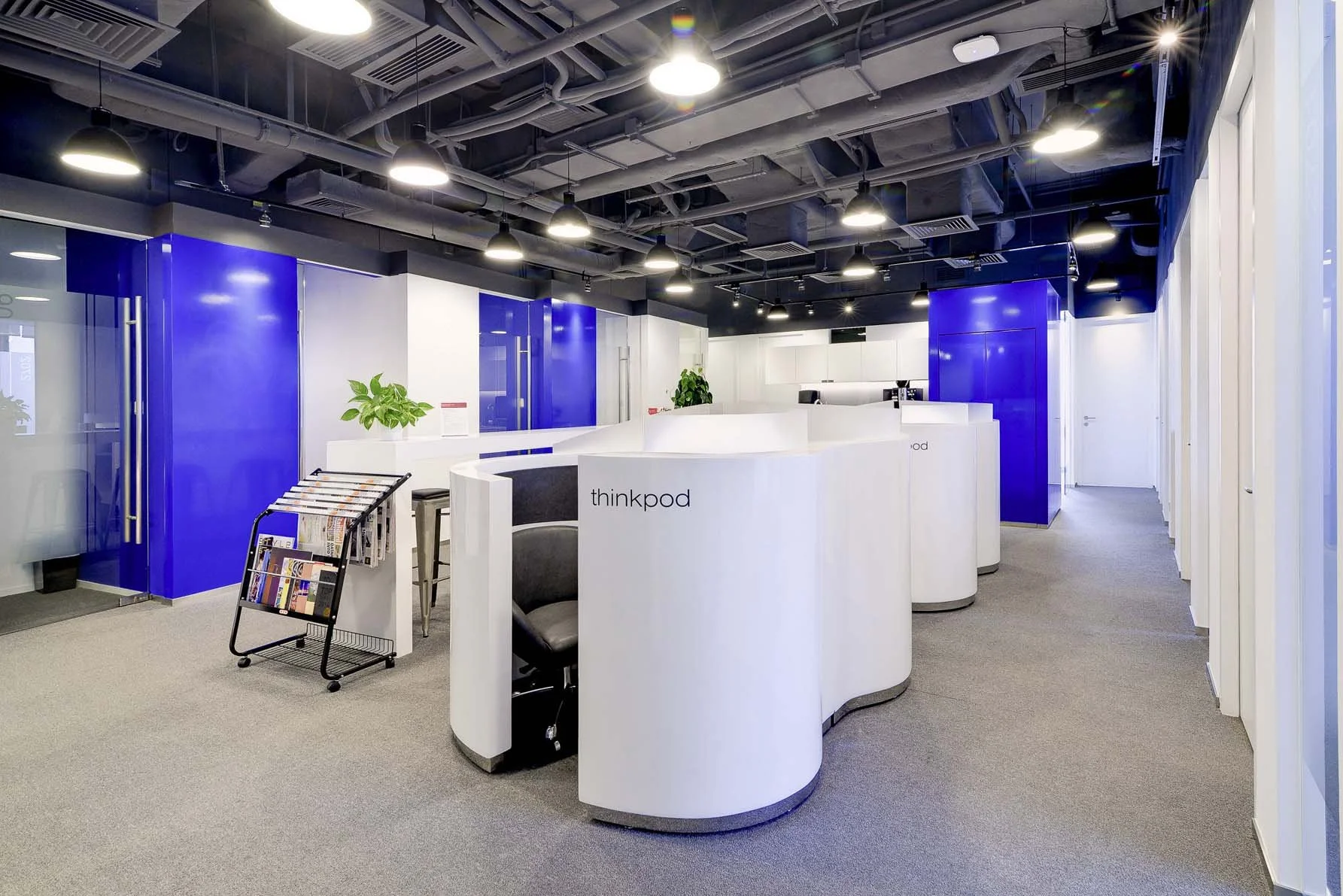 This sophisticated serviced office facility delivers a comprehensive range of private office configurations accommodating over 50 corporate tenants, complemented by professional client meeting facilities and innovative agile working environments featuring custom-engineered "thinkpods" designed for focused individual productivity.
