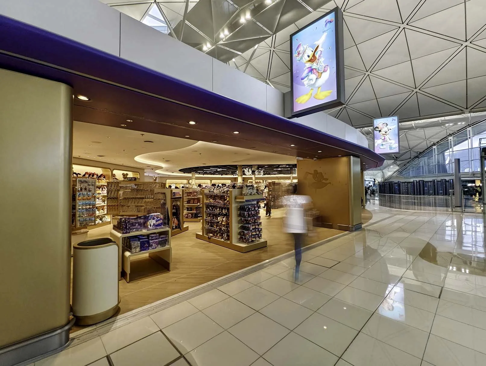 This retail interior design project represents a complete rebranding and aesthetic transformation of the theme park's retail presence within HKIA's restricted departure area, creating a contemporary flagship store that authentically reflects the brand's magical identity.